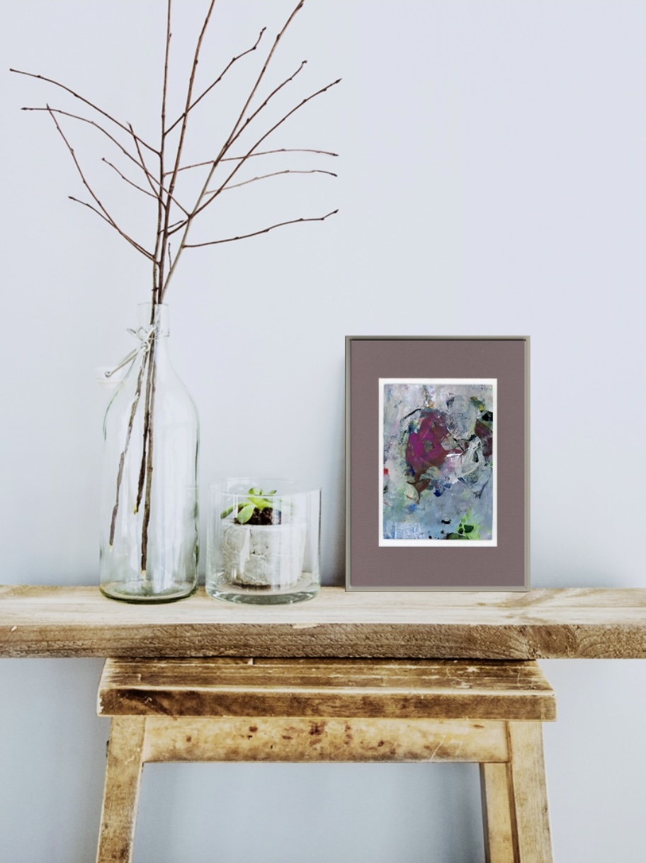 Mounted within a beautiful purple’ish brown A4 passepartout: