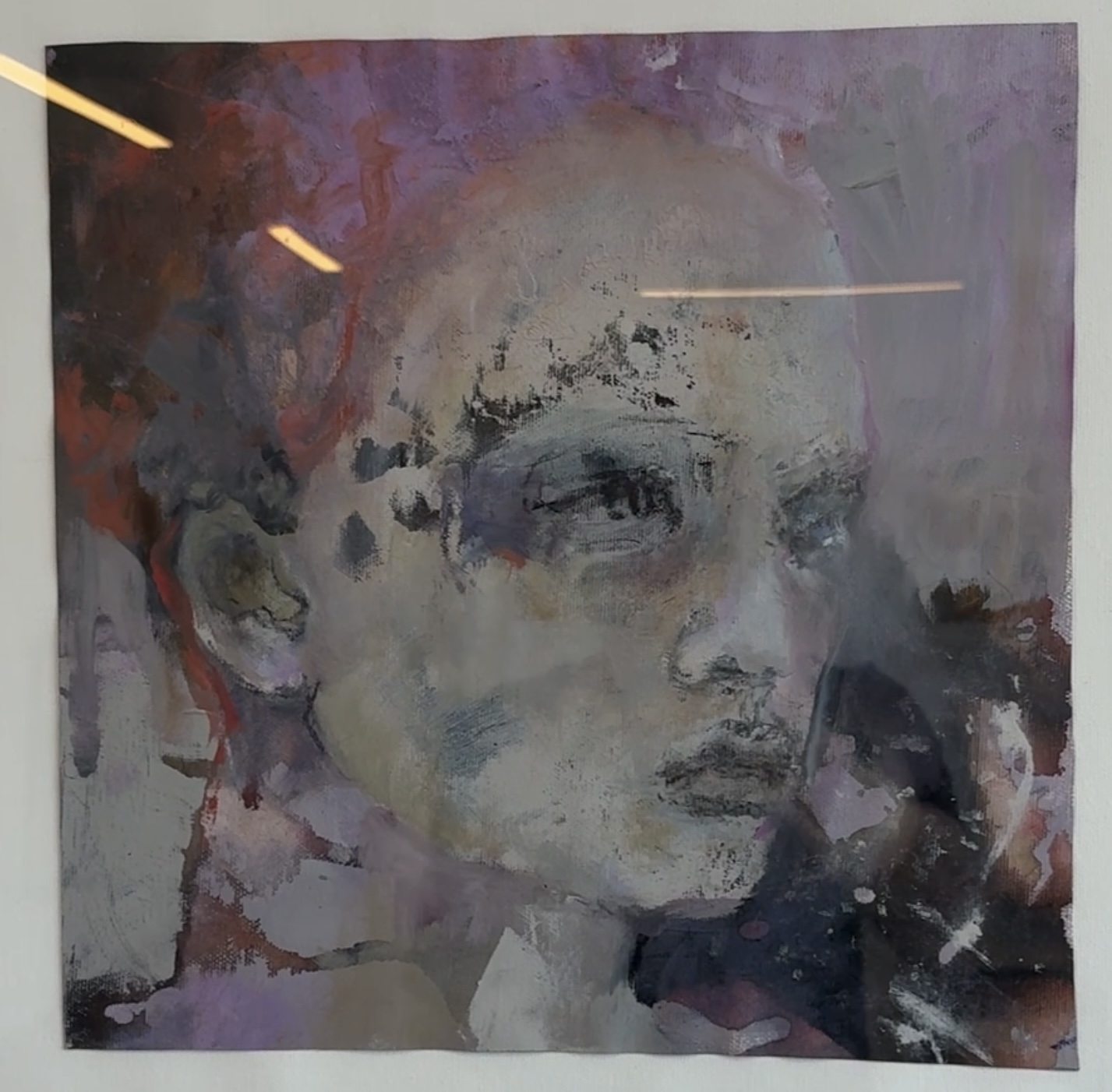 Charcoal, acrylic and oil on canvas. Mounted in a 40x40cm passepartout.