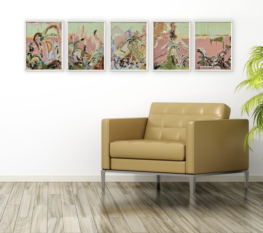 ’As your gaze moves across the landscape you get a glimpse of organic motifs. The work her is an abstraction of wild ditch-edge plants.