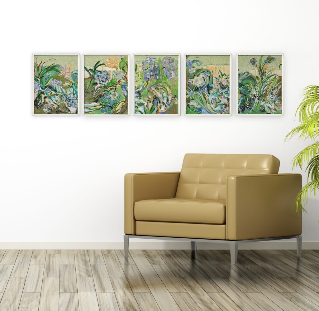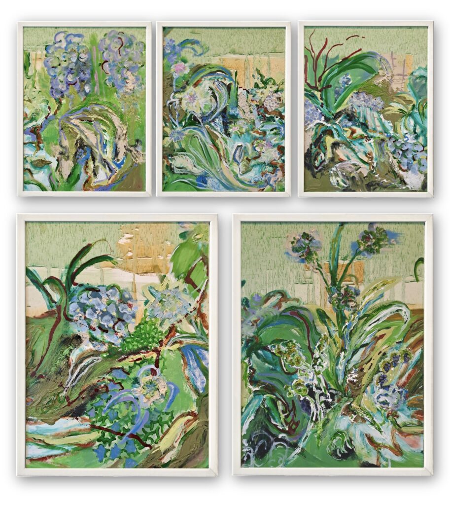 ’As your gaze moves across the landscape you get a glimpse of organic motifs. The work her is an abstraction of wild ditch-edge plants.
