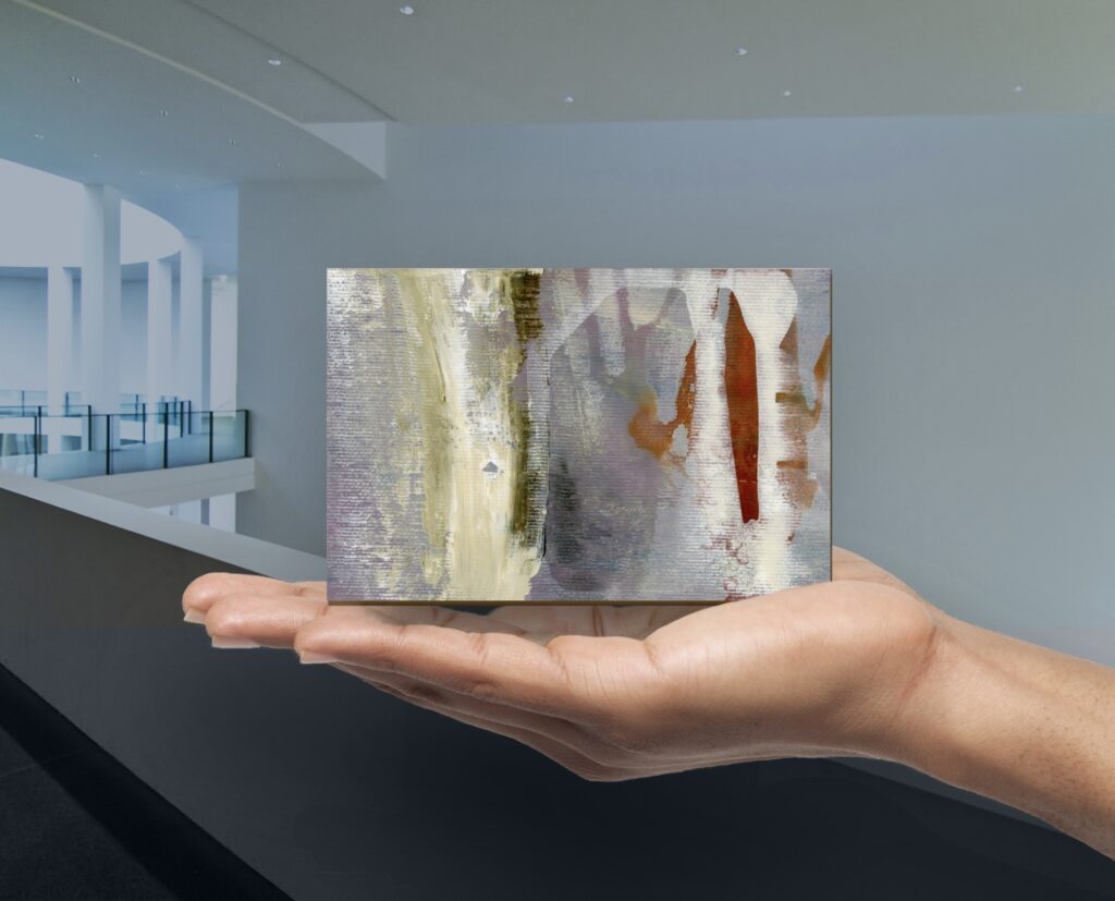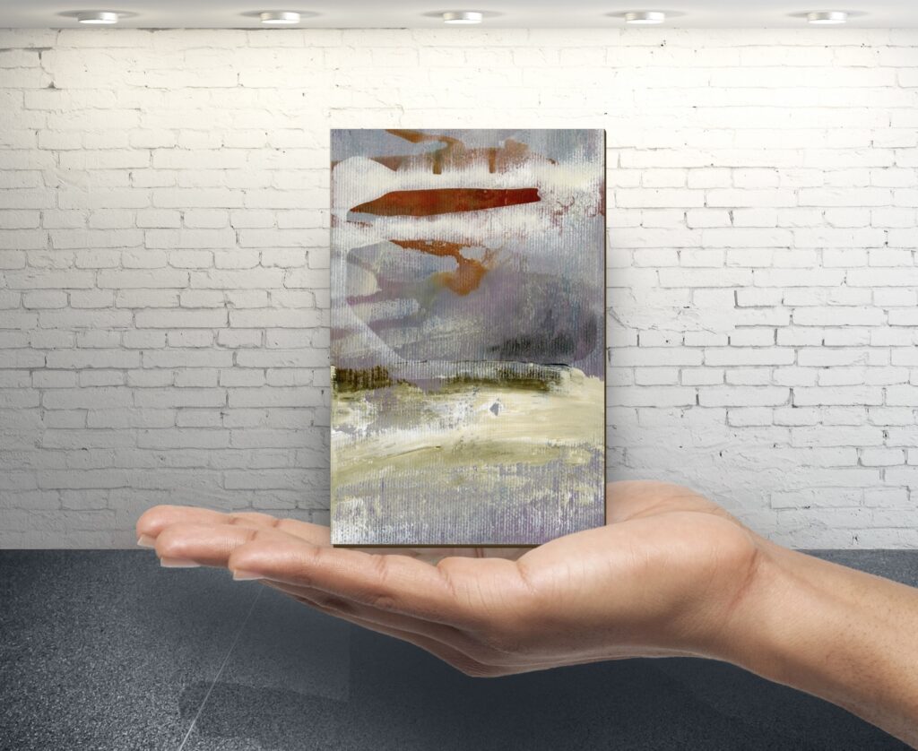 Acrylic paint and/or oil paint on canvas mounted on a woodpanel for a flexible and cool presentation of one or more artworks directly on your wall.