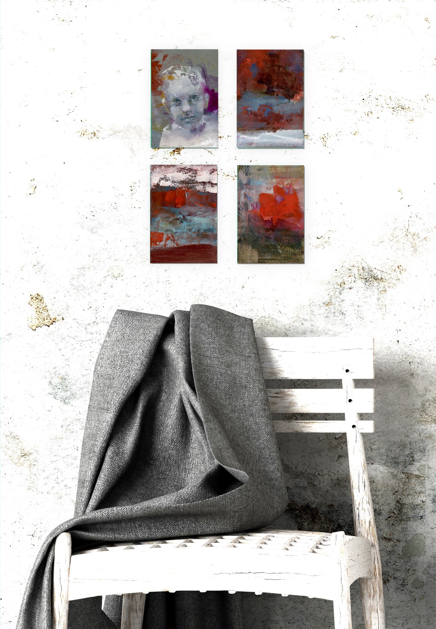 Acrylic paint and/or oil paint on canvas mounted on a woodpanel for a flexible and cool presentation of one or more artworks directly on your wall.