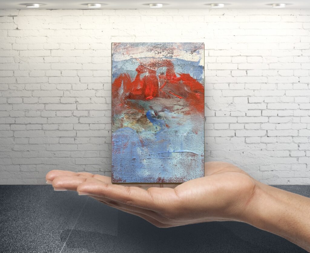 Acrylic paint and/or oil paint on canvas mounted on a woodpanel for a flexible and cool presentation of one or more artworks directly on your wall.