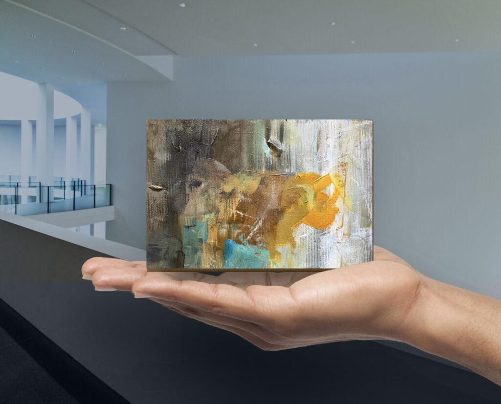 Acrylic paint and/or oil paint on canvas mounted on a woodpanel for a flexible and cool presentation of one or more artworks directly on your wall.