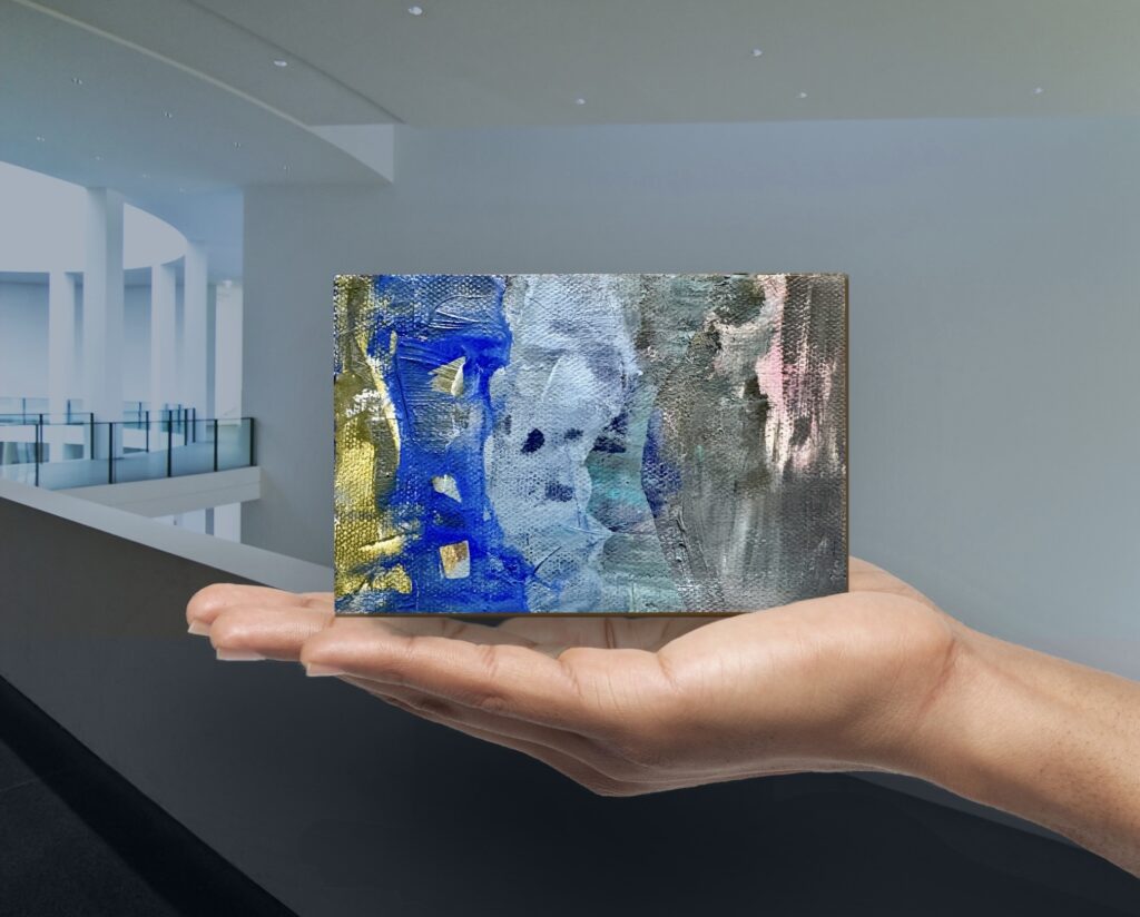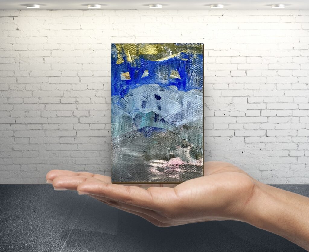 Acrylic paint and/or oil paint on canvas mounted on a woodpanel for a flexible and cool presentation of one or more artworks directly on your wall.