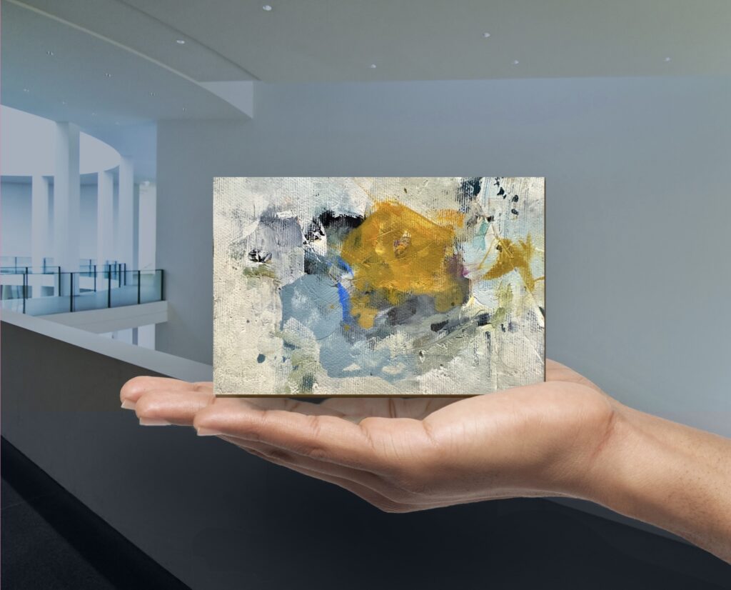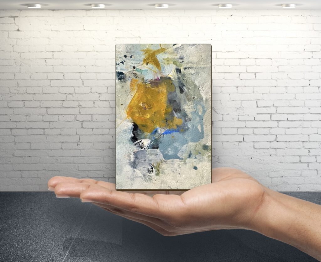 Acrylic paint and/or oil paint on canvas mounted on a woodpanel for a flexible and cool presentation of one or more artworks directly on your wall.