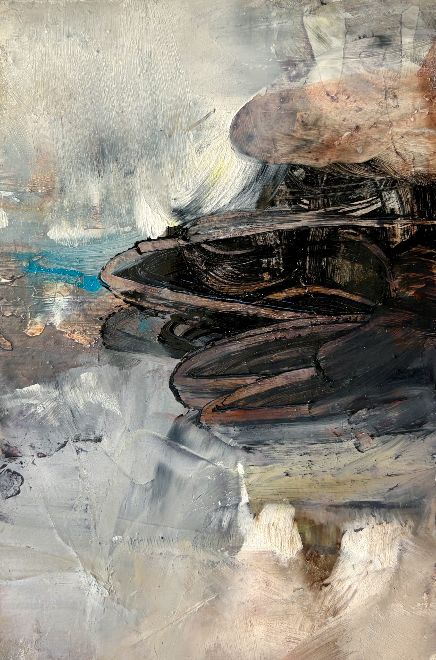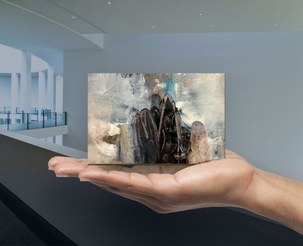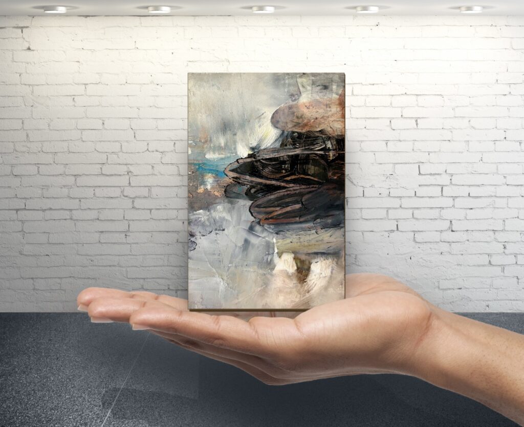 Acrylic paint and/or oil paint on canvas mounted on a woodpanel for a flexible and cool presentation of one or more artworks directly on your wall.