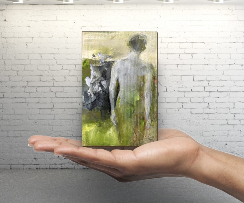 Acrylic paint and/or oil paint on canvas mounted on a woodpanel for a flexible and cool presentation of one or more artworks directly on your wall.