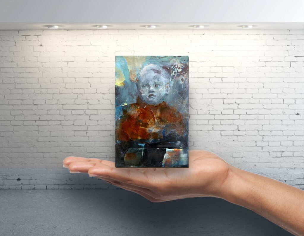 Acrylic paint and/or oil paint on canvas mounted on a woodpanel for a flexible and cool presentation of one or more artworks directly on your wall.