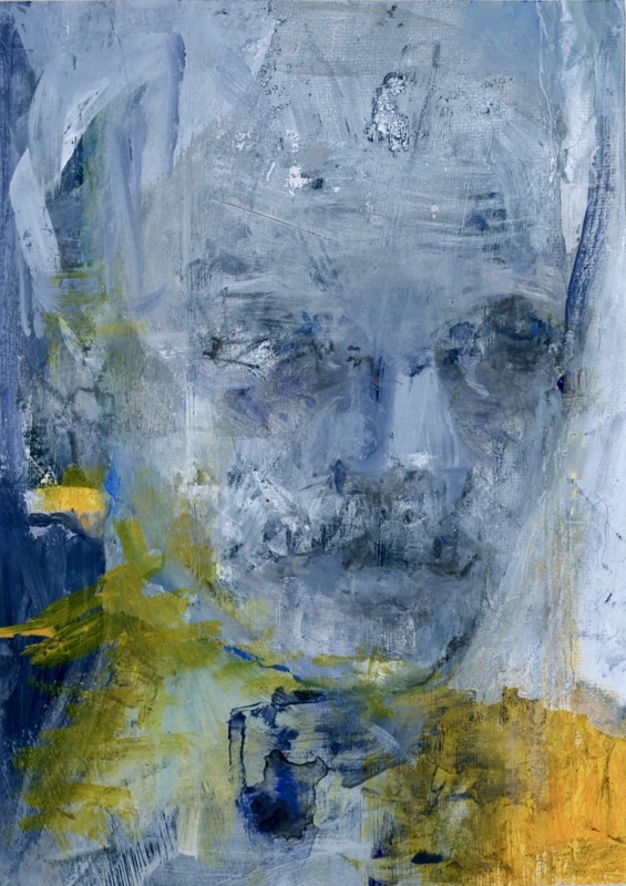 Sketch of a face painted on canvas from a discarted painting.